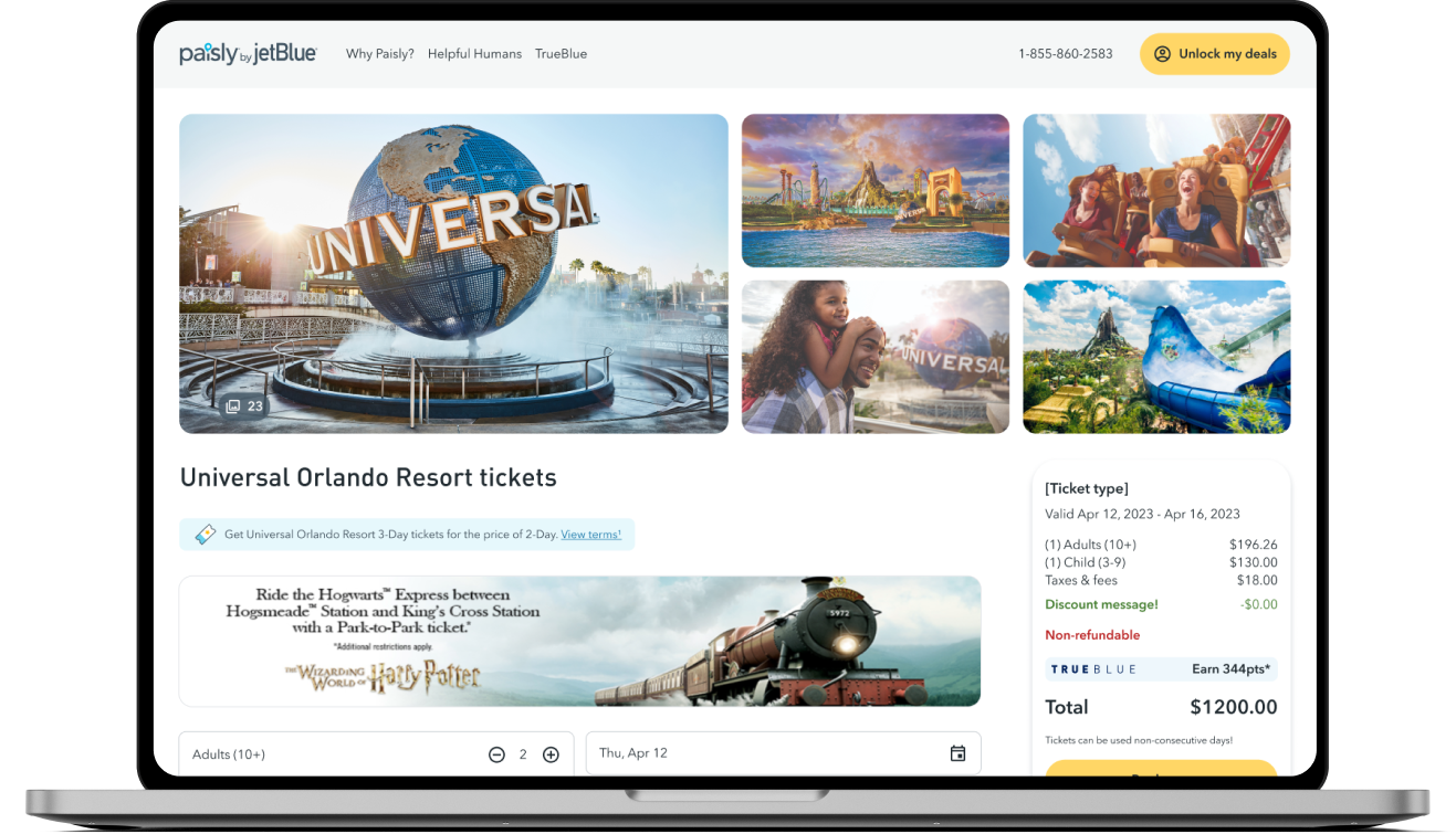 Universal parks are only available for JetBlue customers who buy a ticket to Orlando